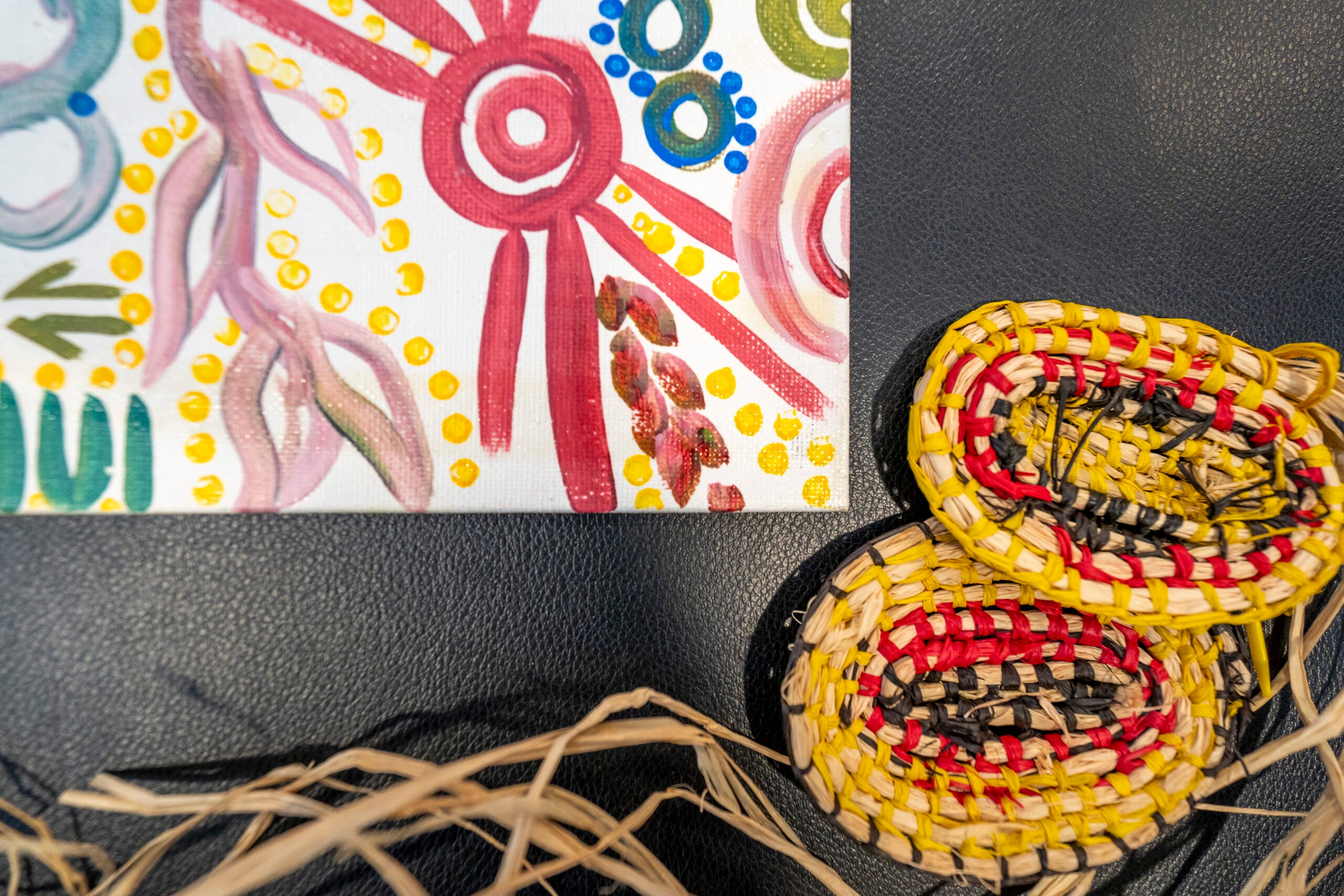 Our thirteen artists include Sandra Saunders, Aunty Betty Sumner, Sonya Rankine, Carly Tarkari Dodd, Tiarnie Edwards, along with the Mardawi Collective made up of Aunty Ellen Trevorrow, Temeika Campbell, Zemiah Campbell, Debra Rankine, Elizabeth Rankine, Bessie Rigney, Stephanie Russell and Margi Sumner. Through artwork, our 13 artists embody the ongoing continued connection and responsibility, creating stories that are interconnected through familiar ties and multiple art disciplines including Ngarrindjeri weaving, large soft sculpture, painting, text-based work, installation and ceramics. Featuring a mix of traditional and contemporary art mediums, Kumarangk showcases existing alongside ambitious new works by multiple generations of Ngarrindjeri women artists.