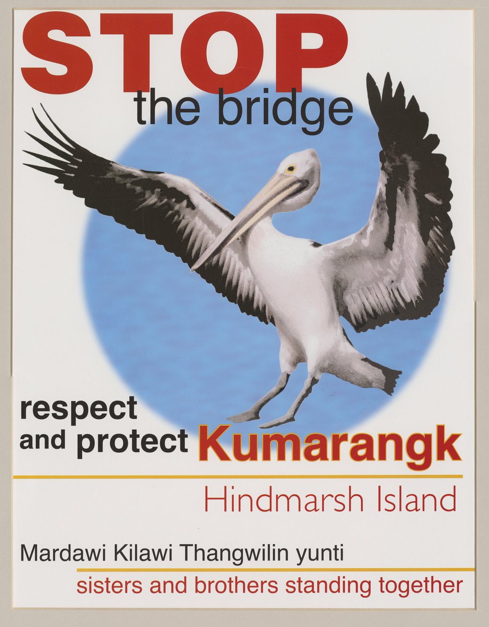 The Kumarangk archive is a community-led archive that centres Ngarrindjeri resistance and activism, and the struggle to protect culture and heritage, as a significant political movement in South Australia’s history. It includes materials relevant to the campaign led by, and in solidarity with, the Ngarrindjeri community in response to the Hindmarsh Island (Kumarangk) bridge development. This archive is supported by the State Library of SA and Flinders University and will contribute directly to the creation of Kumarangk as a major community-led body of work for the Adelaide Festival, Tarnanthi Festival, and Adelaide Film Festival. This creative project contributes to the public honouring and collective truth-telling of many Ngarrindjeri women and community, who actively campaigned against the building of the bridge to Kumarangk.