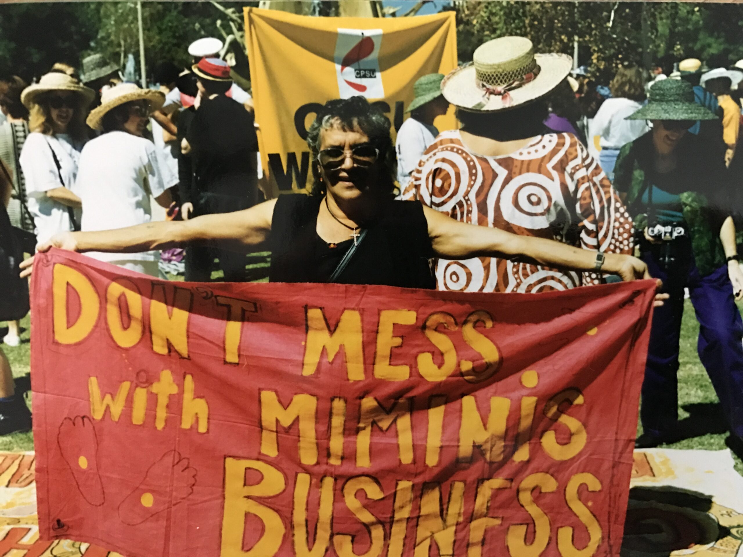 Since colonisation from British forces, Aboriginal people have experienced waves of violence and genocidal acts: some of these violent acts are gendered. In the 1990s and early 2000s another wave of violence was inflicted on Ngarrindjeri mi:minar, through the proposal of a marina and bridge to Kumarangk and then the intense media coverage that followed when they resisted the development.